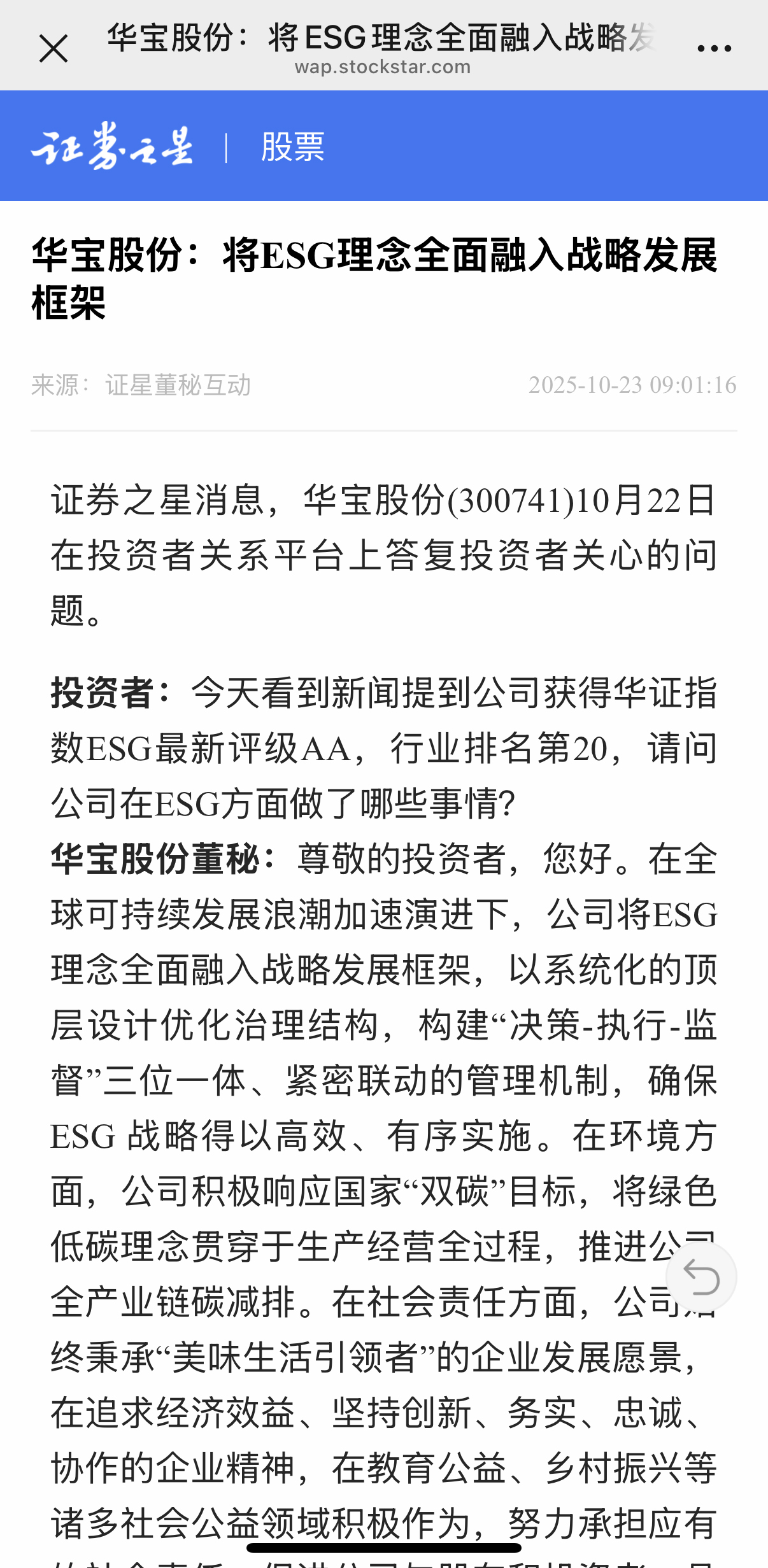 - 《华宝股份:将ESG理念全面融入战略发展框架》(证券之星)
