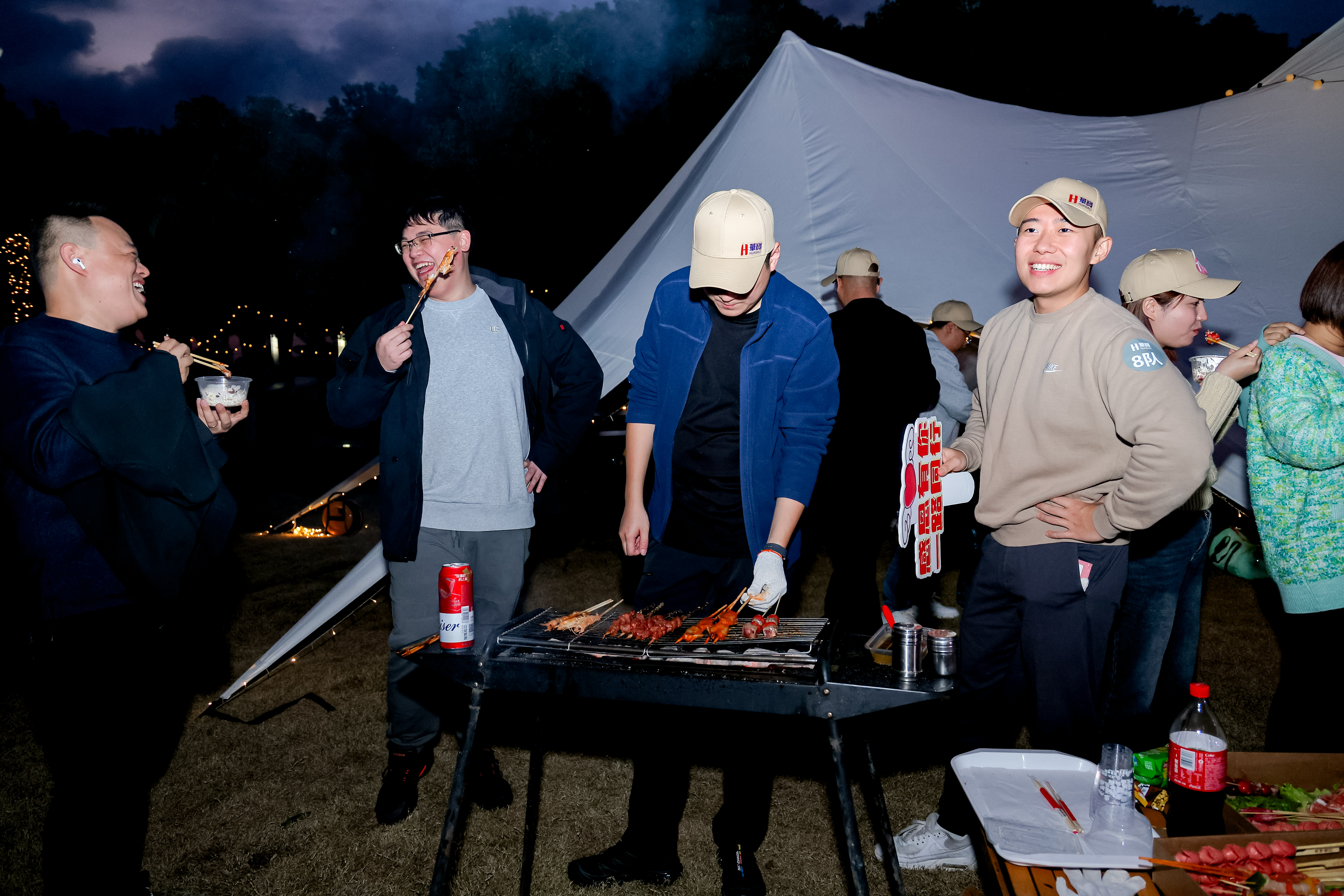傍晚,烧烤场地早已炊烟袅袅,香气四溢!炭火滋滋作响,肉串、鸡翅在烤架上翻滚冒香。身边的同事化身为“烧烤大师”,刷油、撒料、翻转,动作那叫一个专业!刚烤好的鸡翅还冒着热气,就被围上来的同事抢着尝鲜,你一串、我一串,互相传递分享。