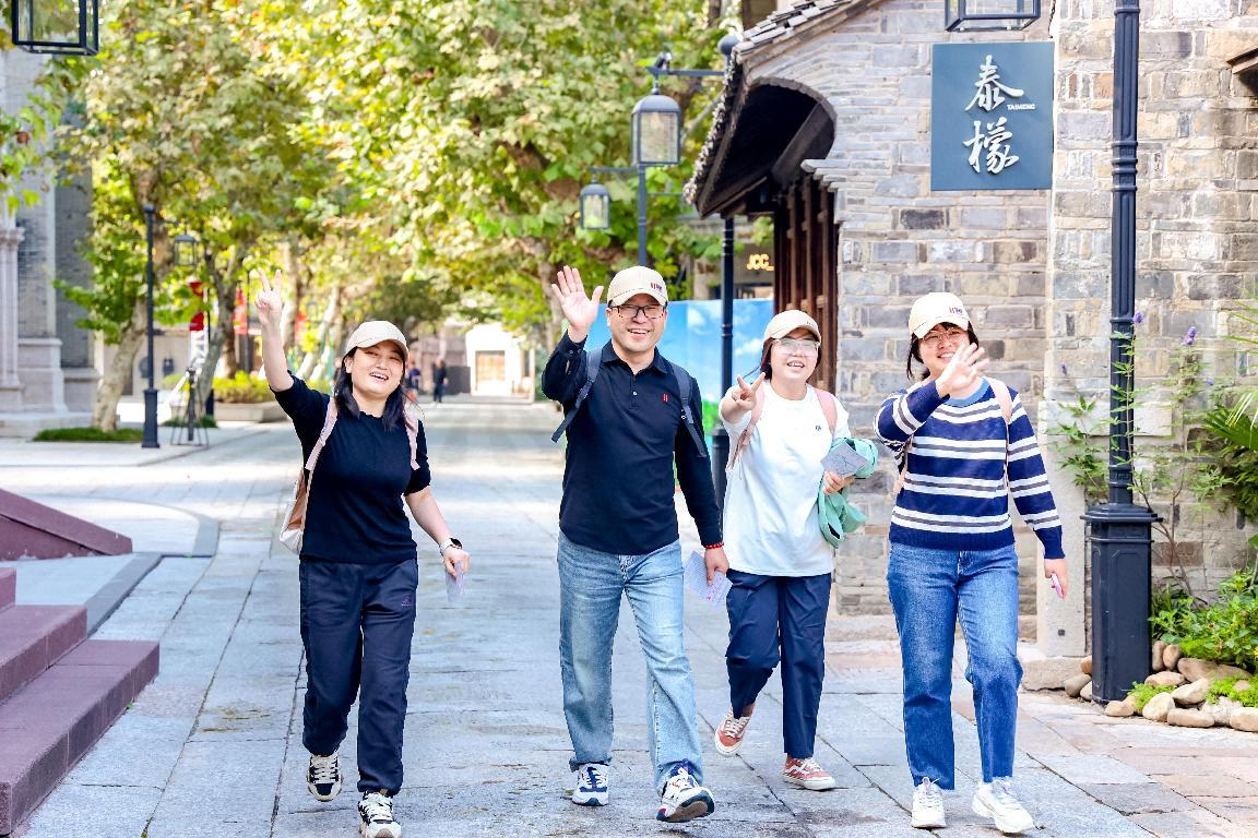 第二天上午,全员集合前往濮院古镇——青石板路、青砖黛瓦、小桥流水,秋意与古韵在此交融。“景点打卡活动”正式开始!大家拿着任务卡,一边穿梭在古镇的街巷里,探寻指定景点为团队争夺积分,一边沉醉在江南古韵里,拍照谈笑,好不惬意。