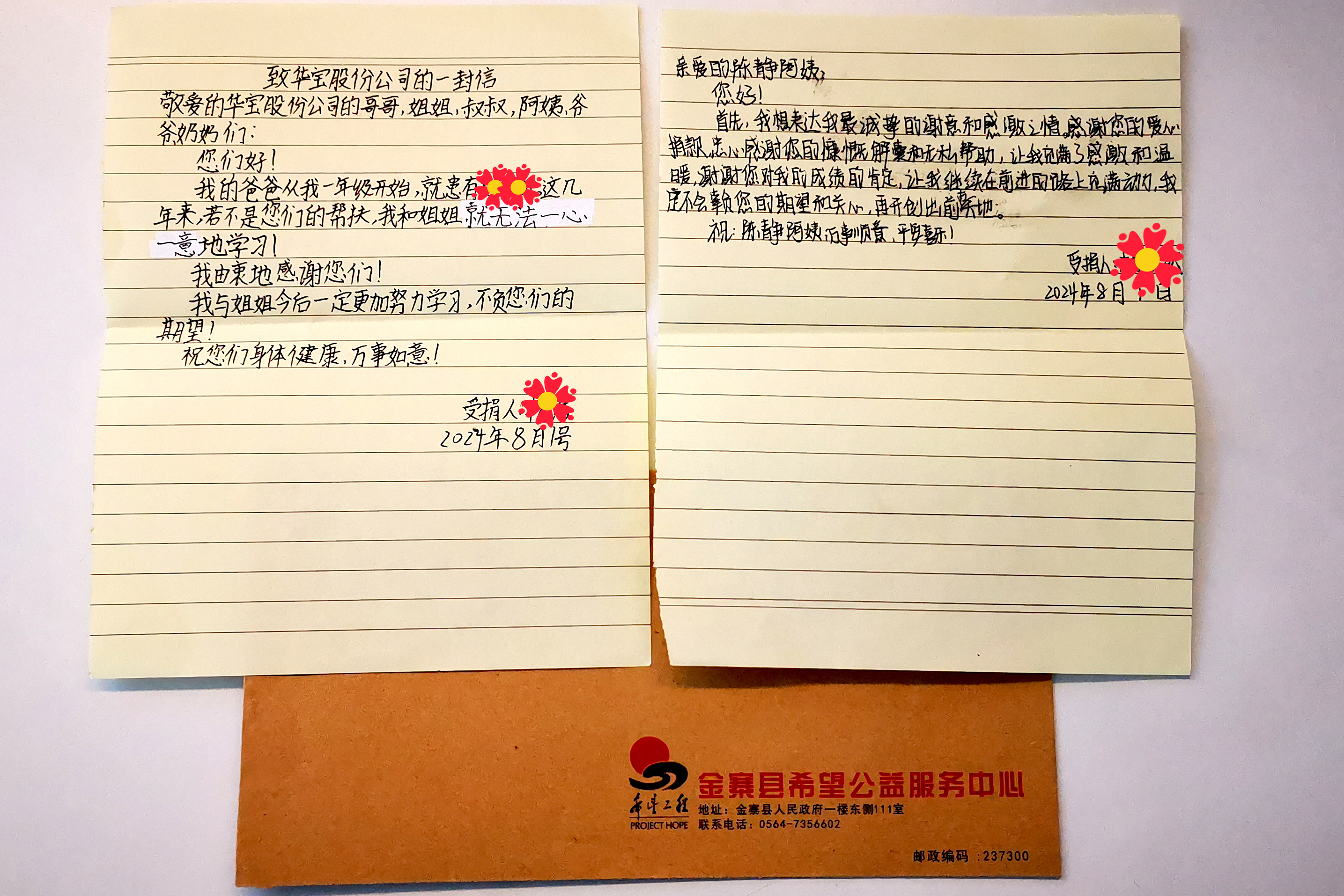 三十余载后,在这片具有特殊意义的土地上,华宝股份的公益故事悄然续写。2023年10月,华宝股份联合公司工会发起“花儿成长计划”公益助学活动,捐资帮助金寨县10名品学兼优的困难学生,开启了系统性公益助学的新征程。
