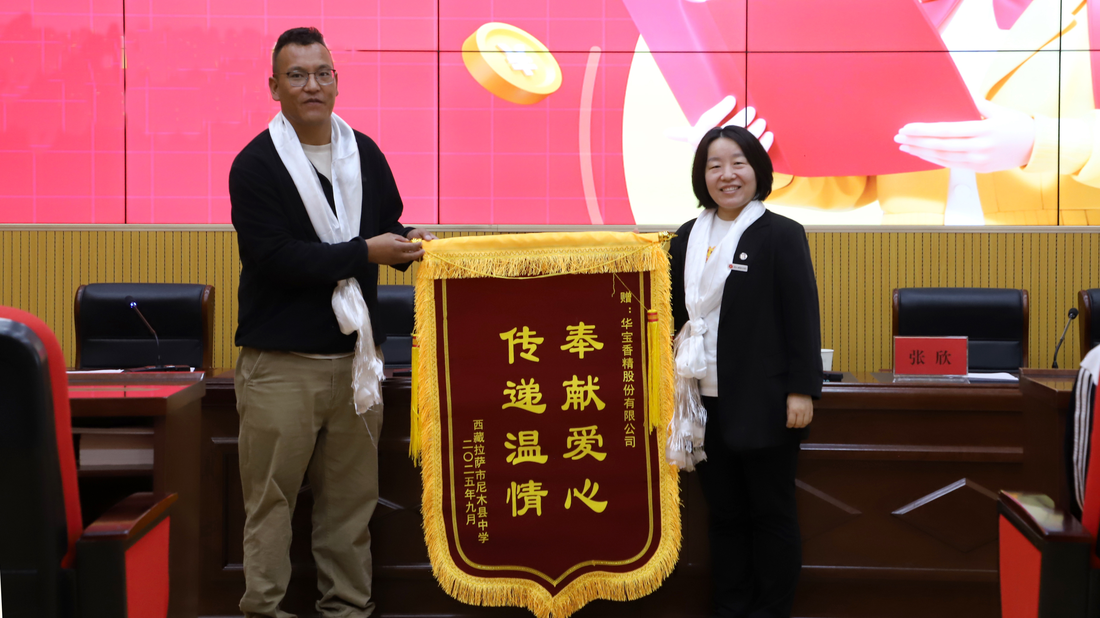 在捐赠仪式上,华宝联合工会主席、公司人事行政部总监陈静表示:“我们从黄浦江畔来到雪域高原,带来的不仅是一份资助,更是一份信任与期许。”